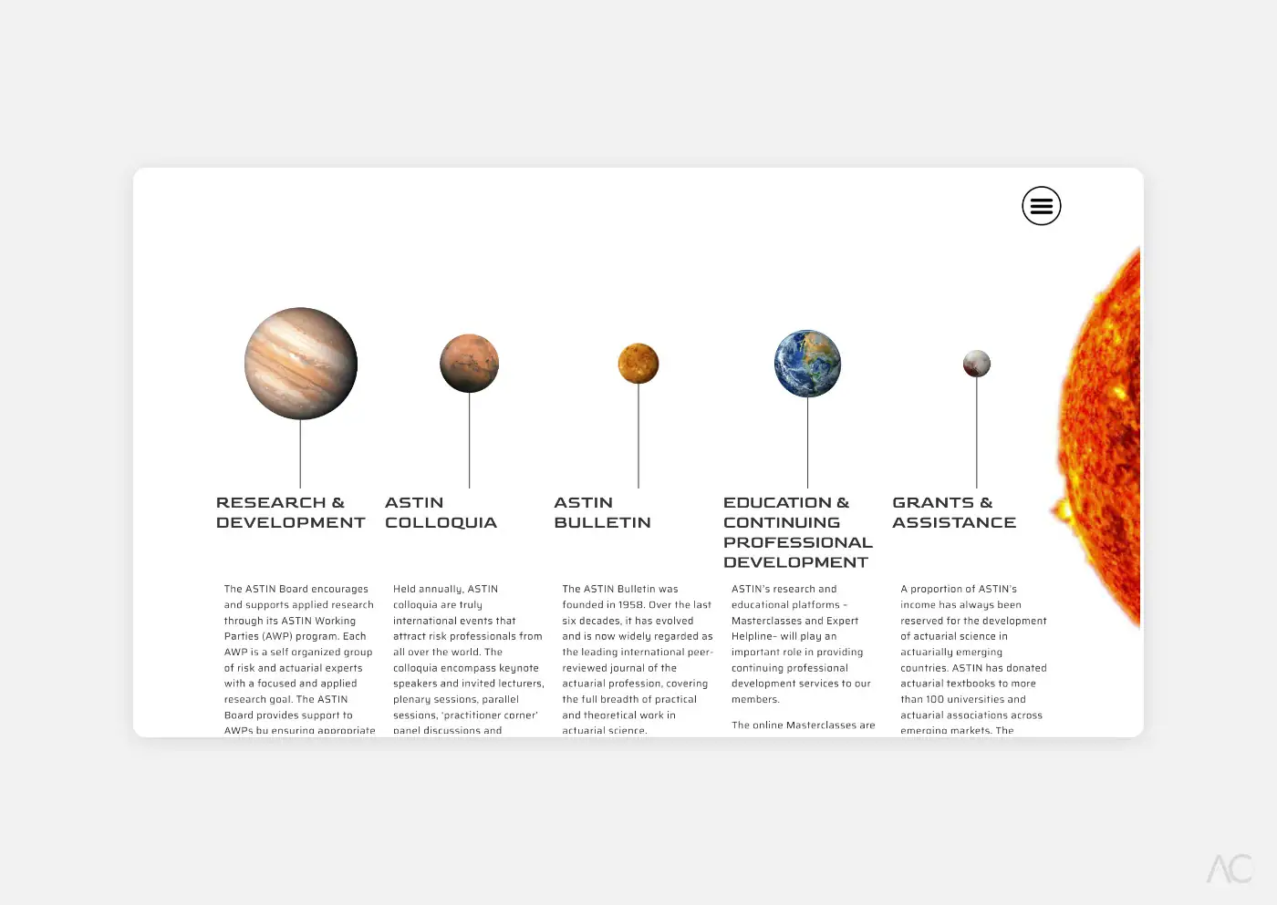 Design, maquettage et développement d’un site internet immersif visant à reproduire une expérience spatiale.