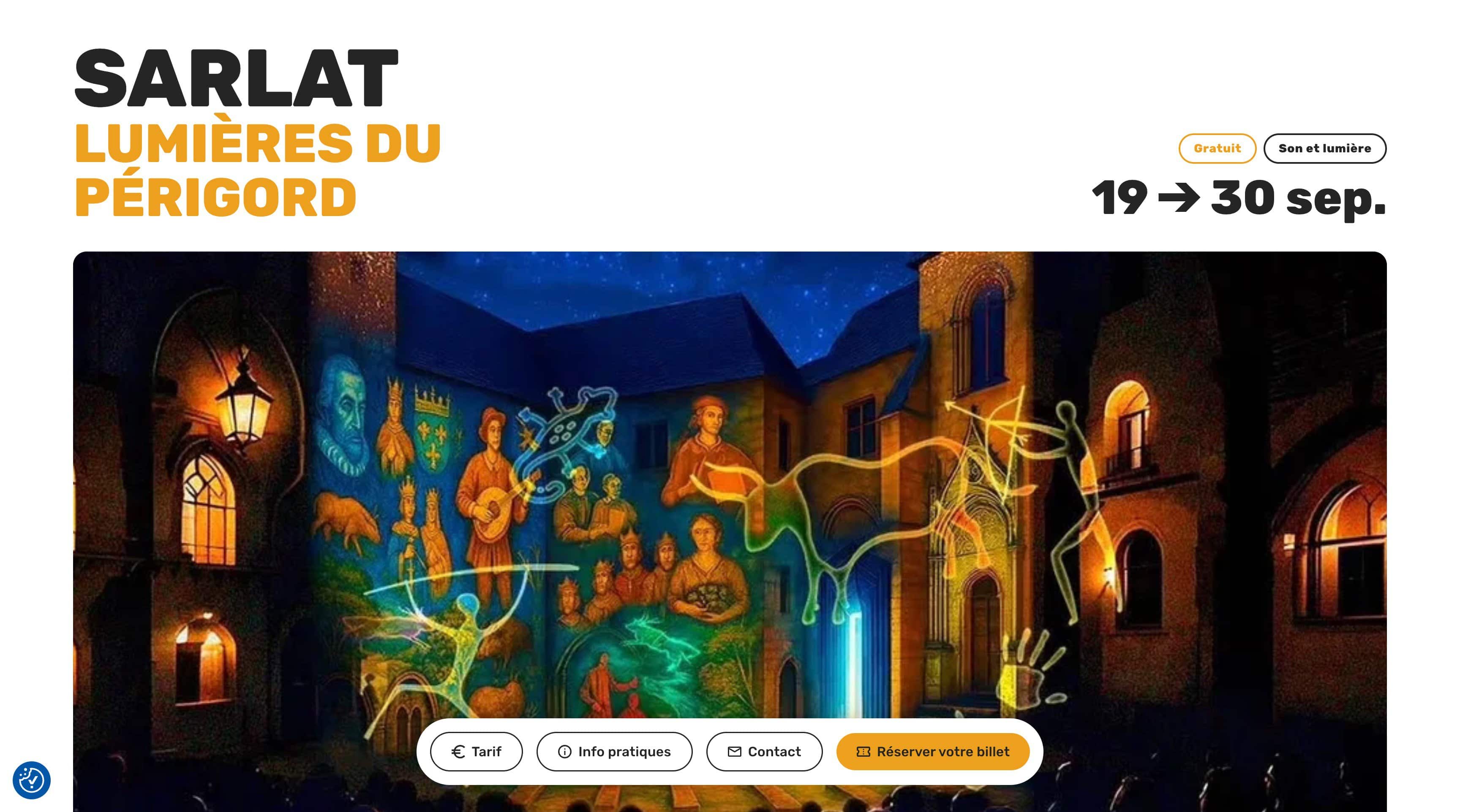 Le template, sous forme de one-pager et développé en no-code sur elementor, a pour d’être très simple de prise en main et intégralement modifiable pour être mis aux couleurs de n’importe quel événement.